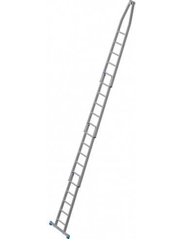A létra felső tagja fali vezetőgörgőkkel és kopásálló, puha gumi anyagú érintkező blokkal, ékkivágással, mely házsarkakra és ablakprofilokra helyezhető