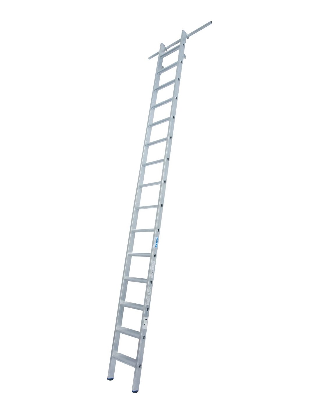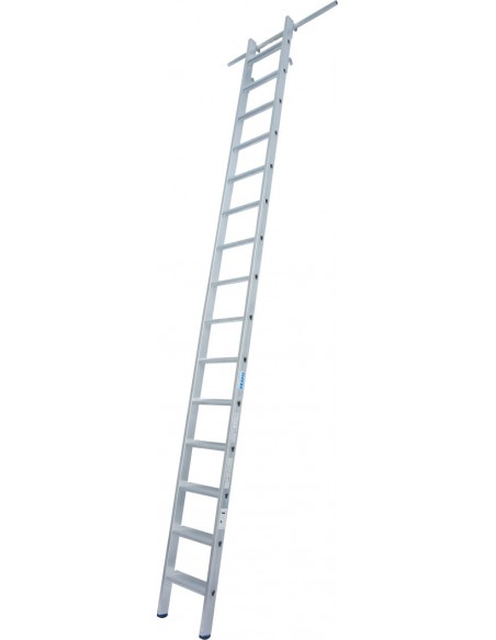 - Használatkor a szárak felső végén található 2 horoggal akasztható a csősínre a létra. A lejjebb található 2 horog a használaton kívüli helytakarékos tárolást segíti