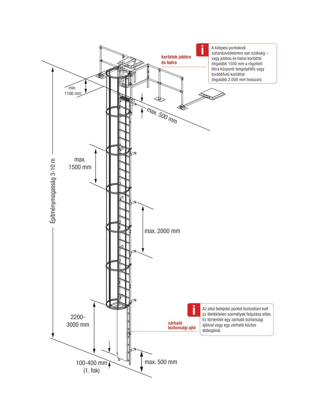 Rögzített létrák a DIN 14094-1 szabványnak megfelelően