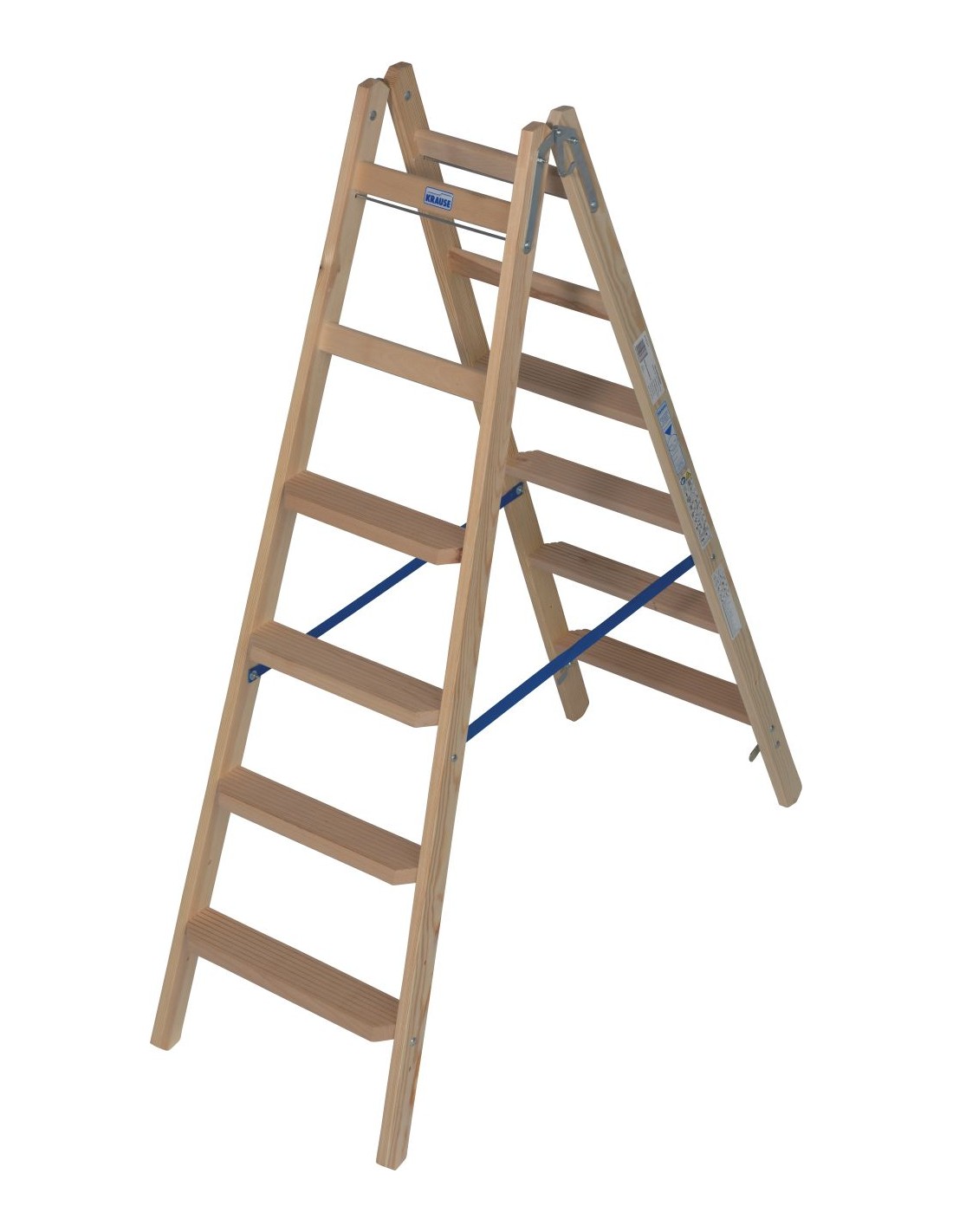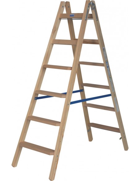 - Kényelmes és masszív két oldalon járható fa állólétra hosszabb idejű munkavégzéshez.