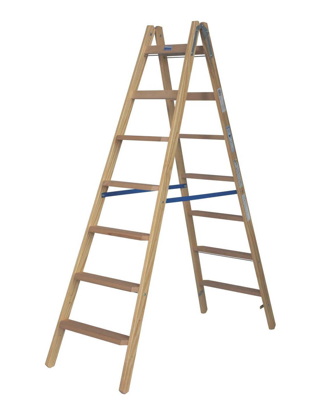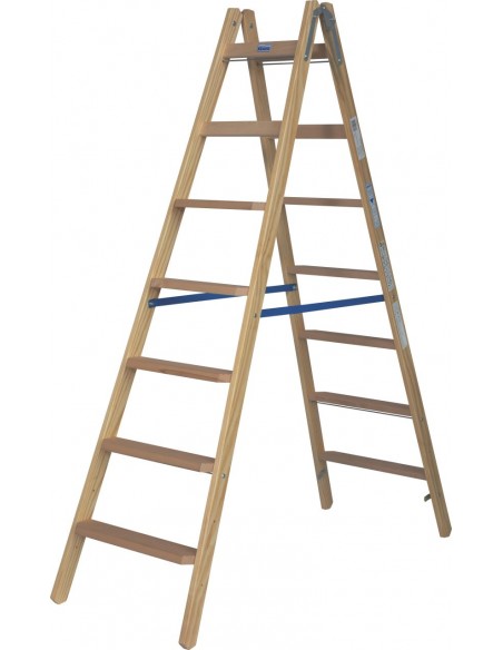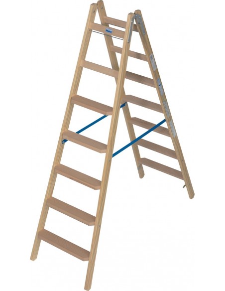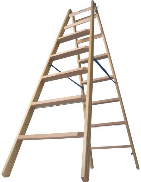 - Kényelmes és masszív két oldalon járható fa állólétra hosszabb idejű munkavégzéshez.