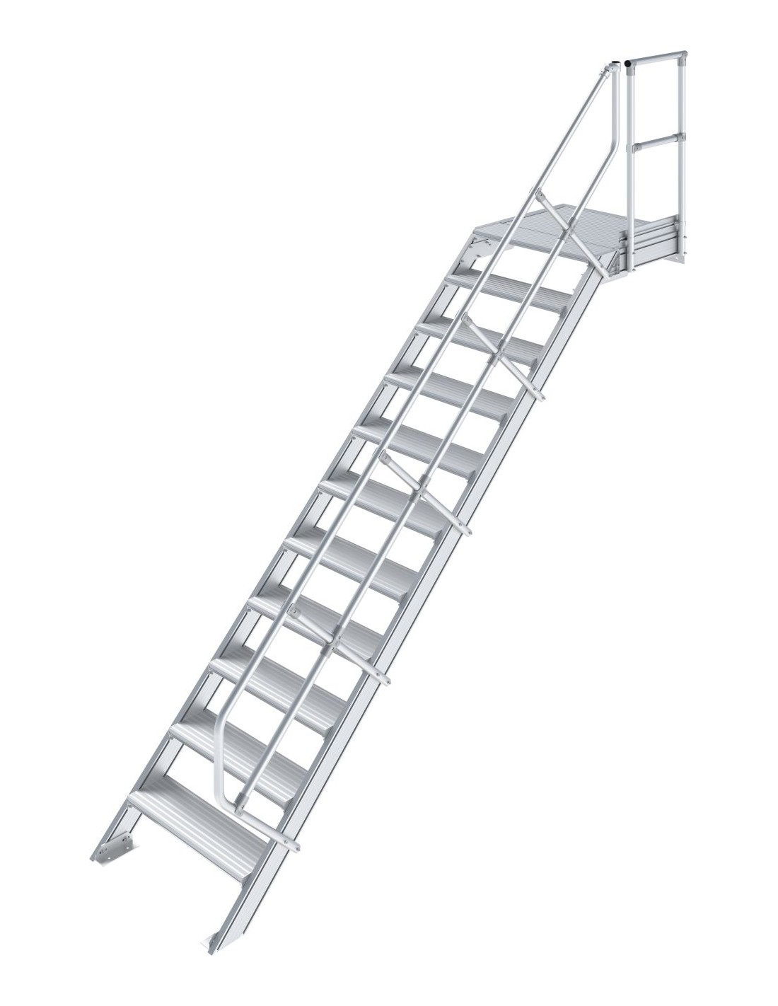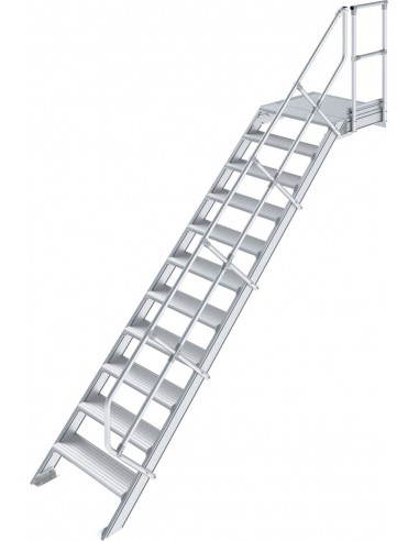 Robusztus alumíniumlépcső ajtók vagy közbenső szintek biztonságos megközelítéséhez, az EN ISO 14122 szabványnak megfelelően.
