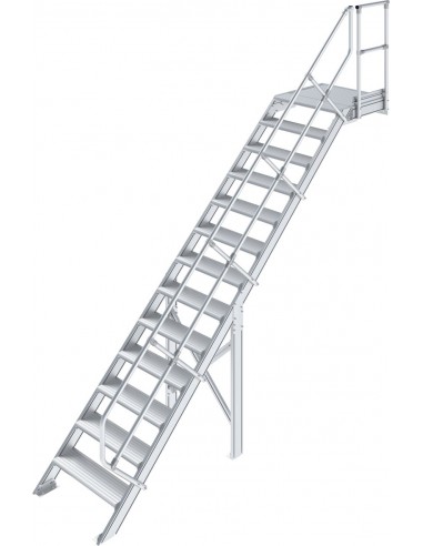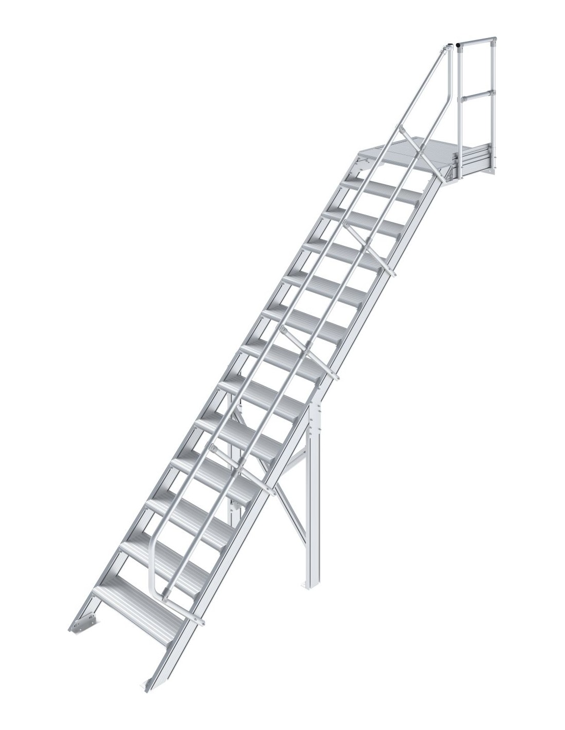 Robusztus alumíniumlépcső ajtók vagy közbenső szintek biztonságos megközelítéséhez, az EN ISO 14122 szabványnak megfelelően.