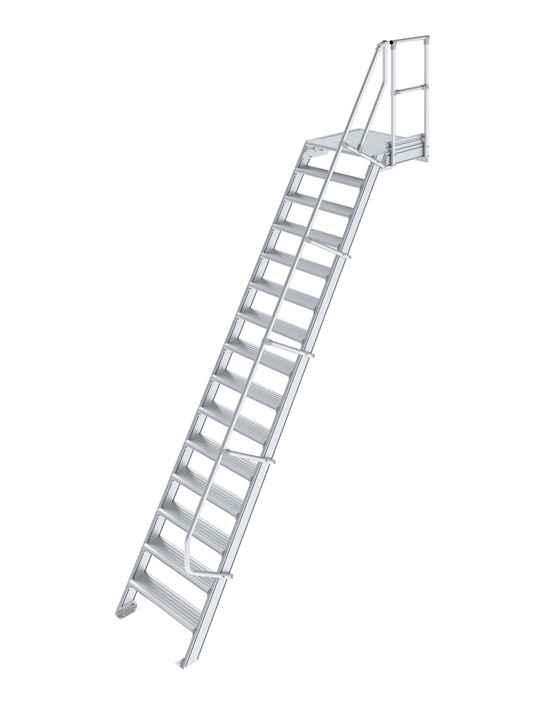 Robusztus alumíniumlépcső ajtók vagy közbenső szintek biztonságos megközelítéséhez, az EN ISO 14122 szabványnak megfelelően.