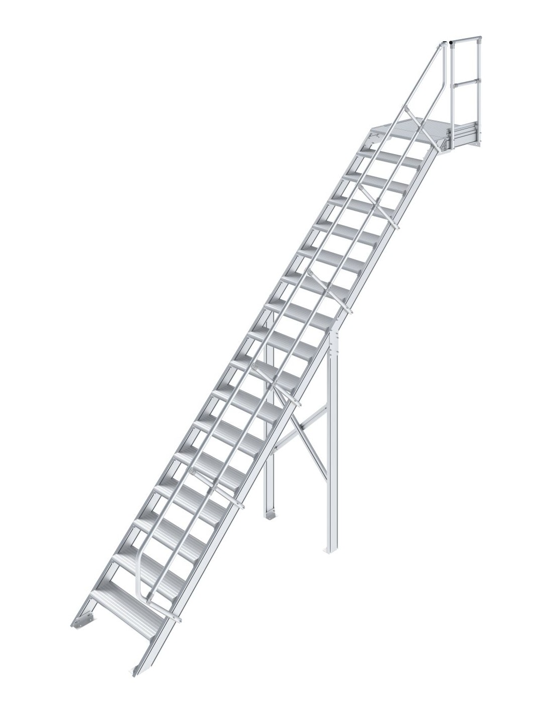 Robusztus alumíniumlépcső ajtók vagy közbenső szintek biztonságos megközelítéséhez, az EN ISO 14122 szabványnak megfelelően.