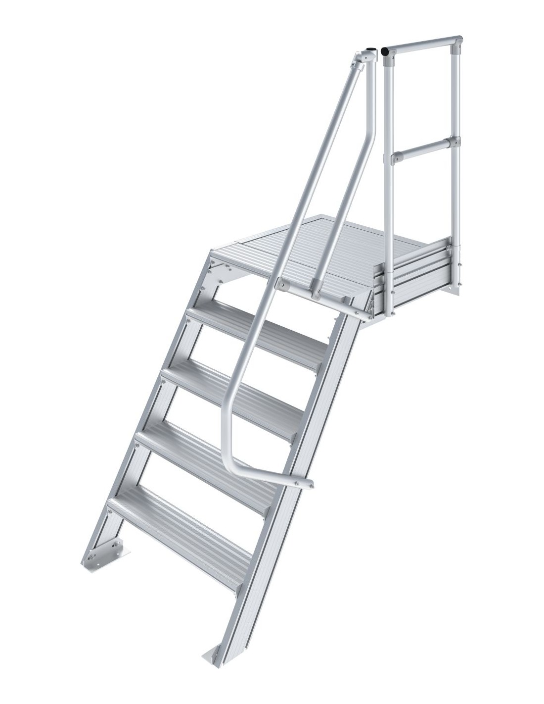 Robusztus alumíniumlépcső ajtók vagy közbenső szintek biztonságos megközelítéséhez, az EN ISO 14122 szabványnak megfelelően.
