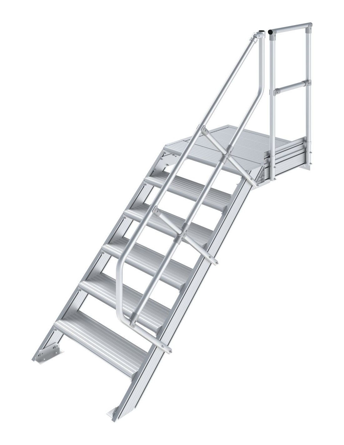 Robusztus alumíniumlépcső ajtók vagy közbenső szintek biztonságos megközelítéséhez, az EN ISO 14122 szabványnak megfelelően.