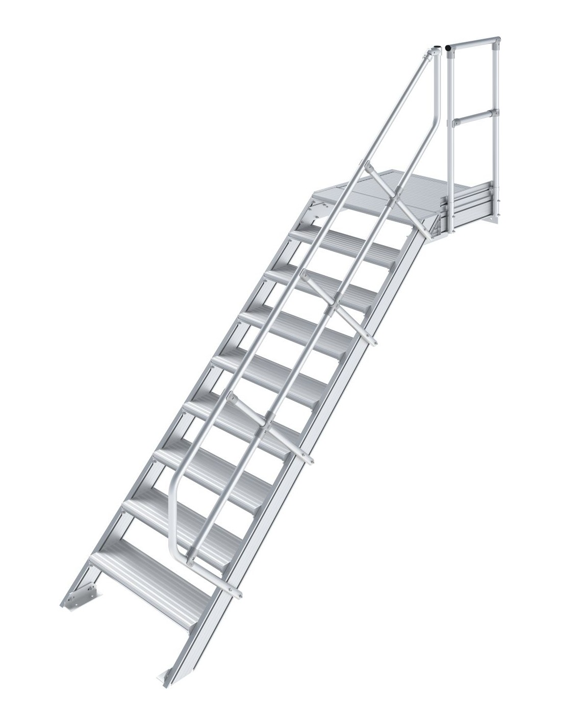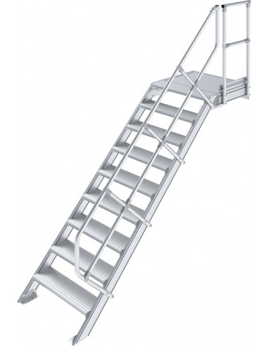 Robusztus alumíniumlépcső ajtók vagy közbenső szintek biztonságos megközelítéséhez, az EN ISO 14122 szabványnak megfelelően.