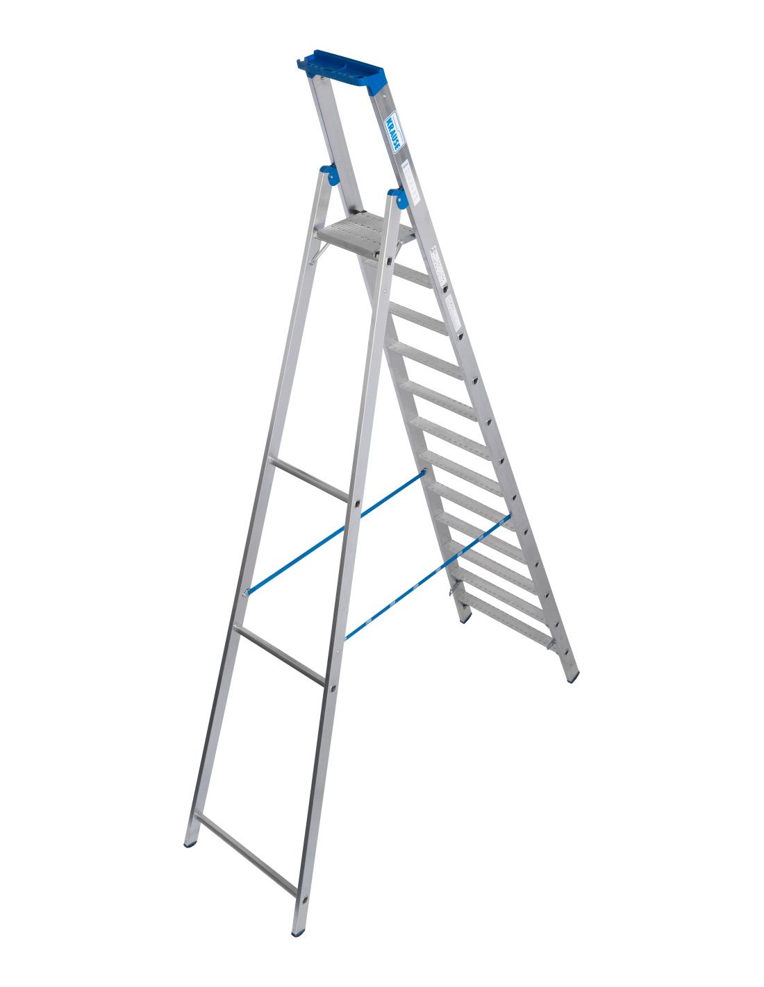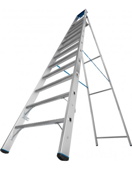 Robusztus alumínium állólétra multifunkciós tálcával és vödörtartóval professzionális használatra – különösen csúszós, olajos munkafelületekhez