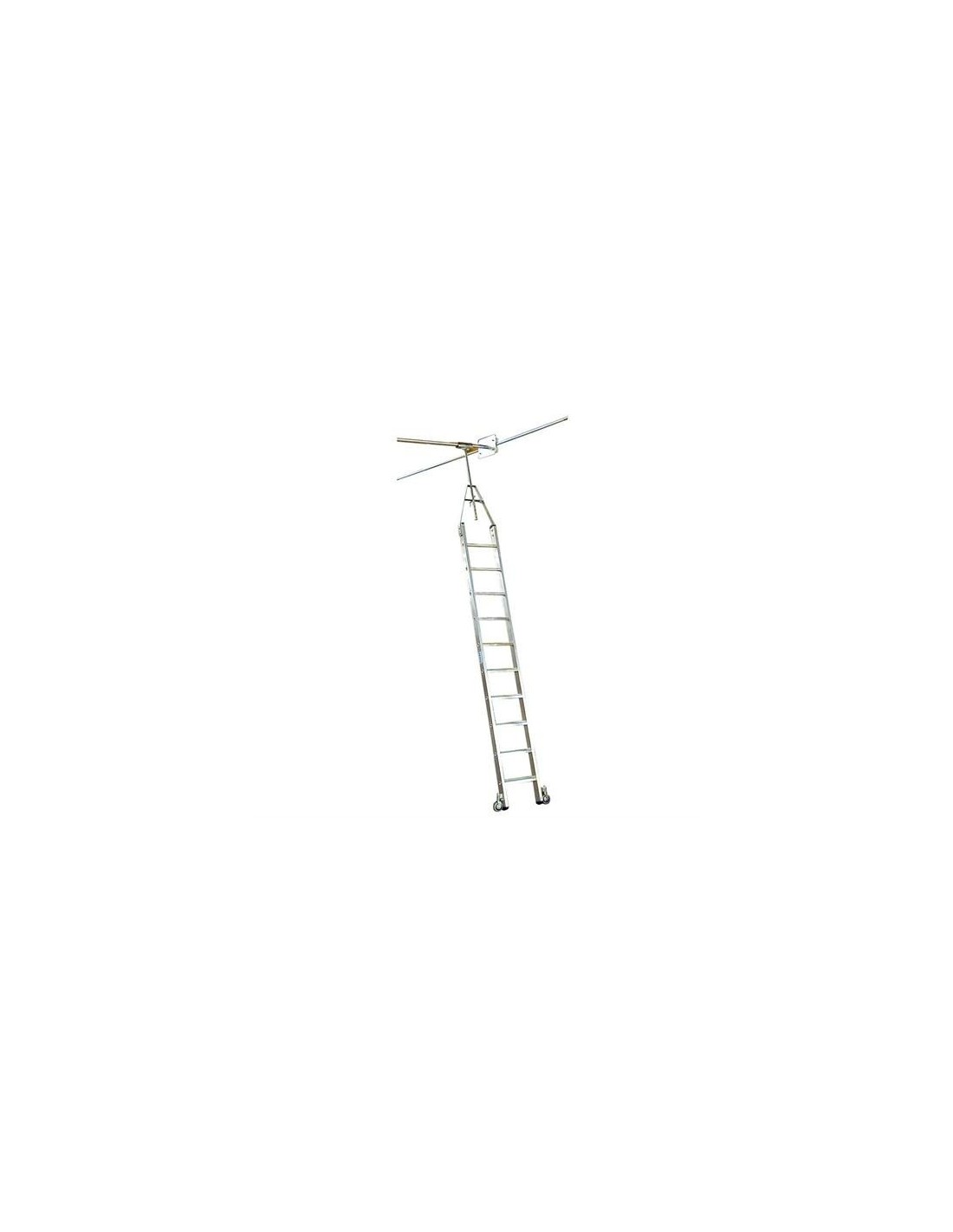- Lépcsőfokos alumínium polclétra az átfordítható sínrendszerhez használható integrált futószerkezettel.