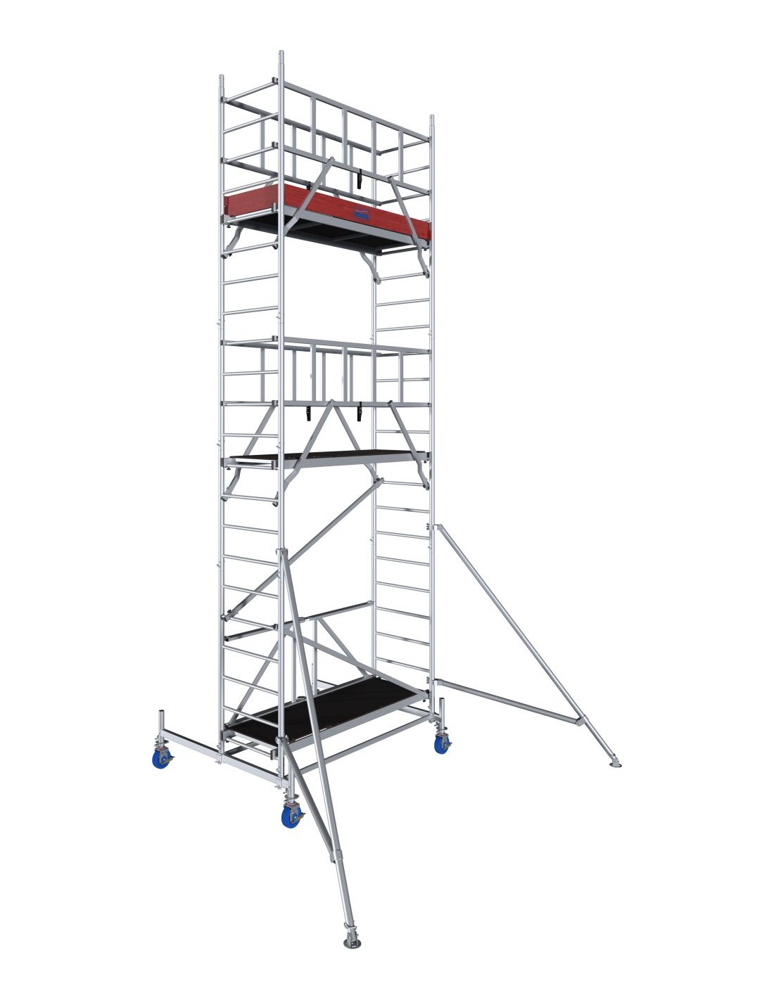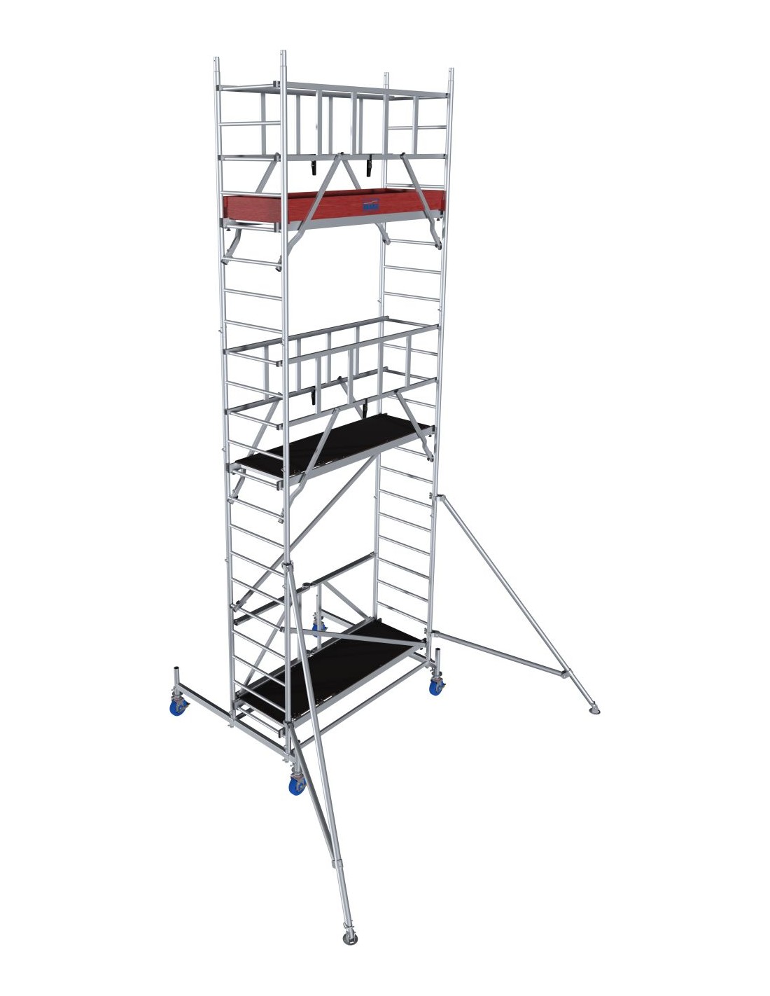 A nagy szilárdságú acél kitámasztók 3,80 m munkamagasságtól optimális stabilitást biztosítanak