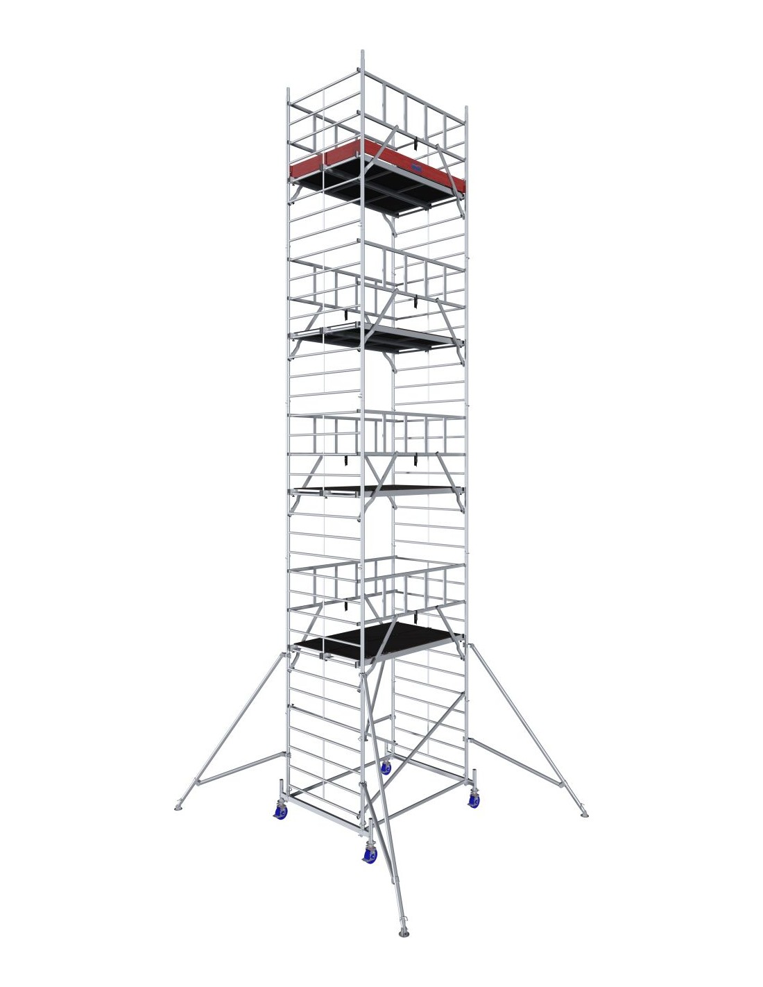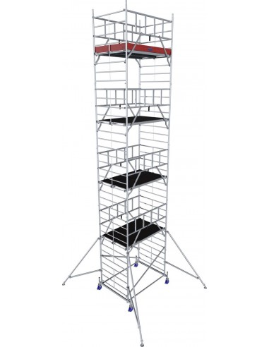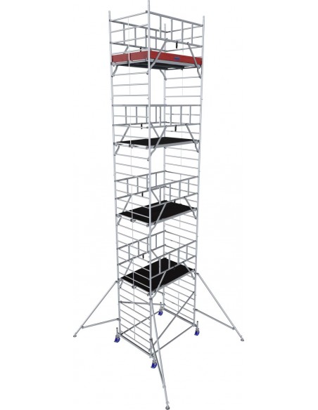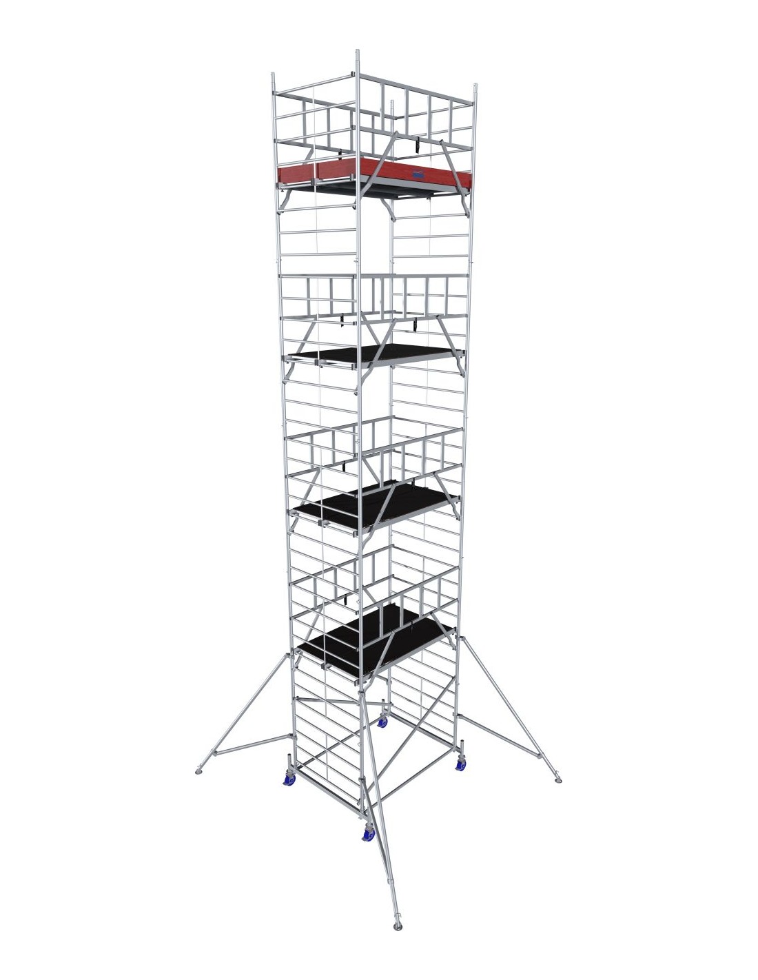 A nagy szilárdságú acél kitámasztók 4,30 m munkamagasságtól optimális stabilitást biztosítanak