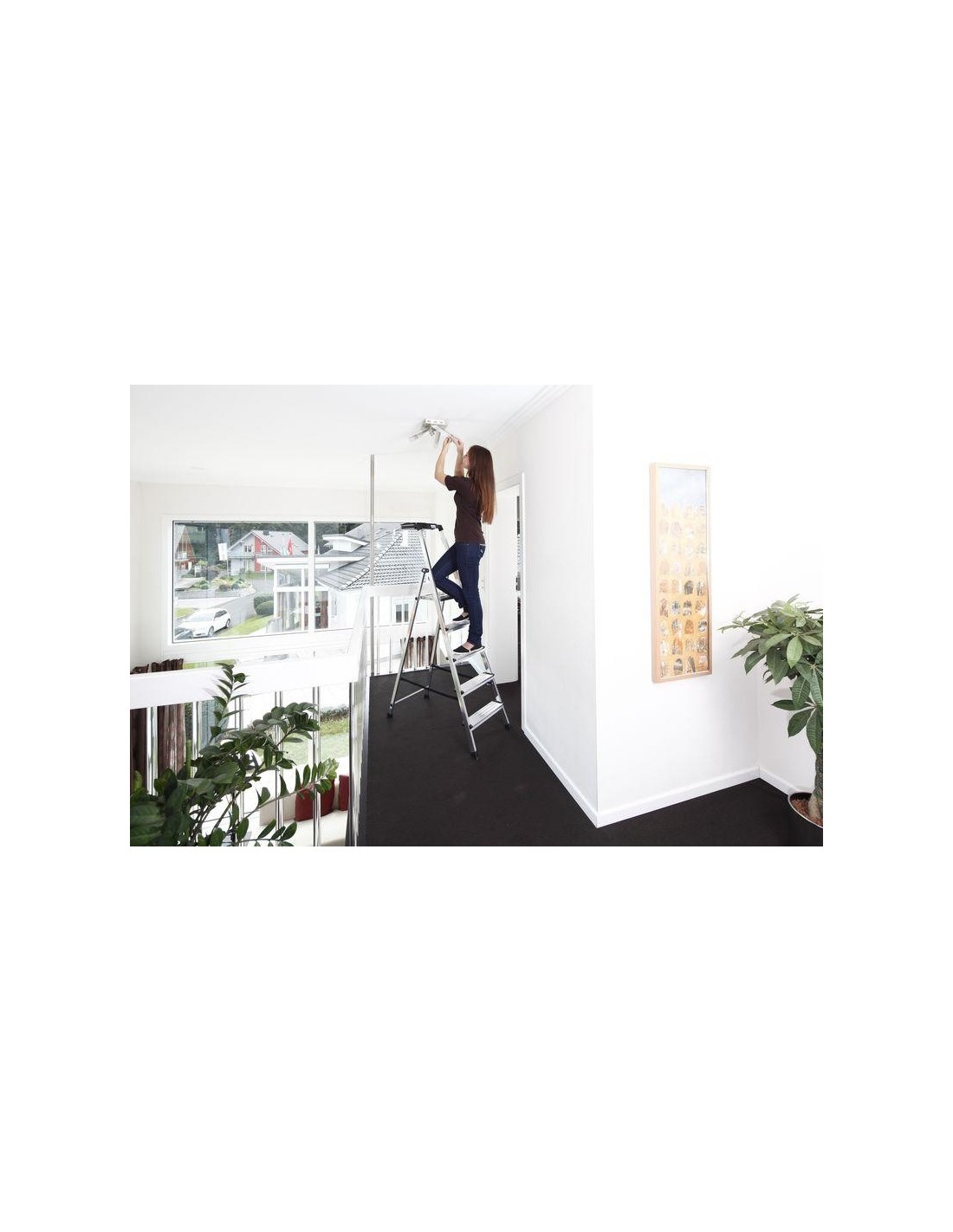 Kompakt alumínium állólétra szinte korlátlan tárolási lehetőséggel, így elkerülhető az állandó fel- és lemászás.